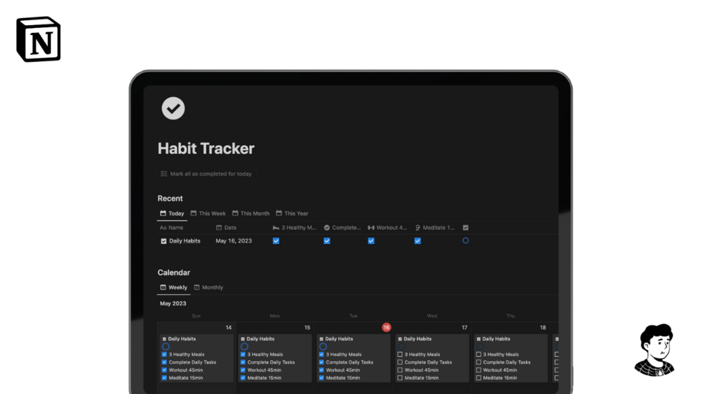 Always good to have a habit tracker by your side. Keep track of your daily habits.