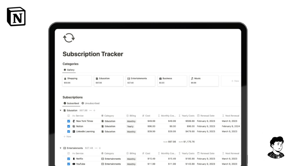 You will never forget to cancel or renew your subscriptions ever again. You can always convert this template to track any other activity.